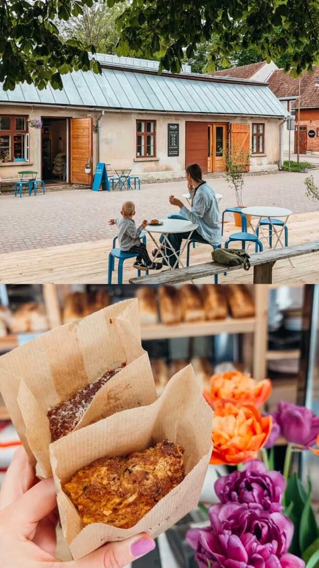 Pirmkārt, brokastis. Vietējā maiznīca Celms ar terasi koku paēnā, kas piedāvā svaigu, pašu ceptu maizi dažādās variācijās. Un kafiju. Un vasaras aukstos dzērienus. Un smaidīgu sagaidīšanu. Un, ja ar bērniem, tad superfeini, ka terase ir blakus nelielam stāvlaukumam, kas nozīmē - mašīnu kustība tikpat kā nav, bērni var brīvi izlocīt kājas drošā redzes lokā.